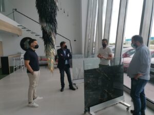 Una delegación del equipo de Gobierno municipal ha visitado hoy las instalaciones de la empresa Singularglass en Villena, una empresa con más de 20 de años de recorrido que se ha convertido en las principales capitales de Europa en sus proveedores de referencia en carpintería de aluminio y, sobre todo, en sus cristales de grandes formatos personalizados. La delegación, encabezada por el alcalde, Fulgencio Cerdán, estuvo formada por la edil de Desarrollo y Promoción Económica, Esther Esquembre; el edil de Urbanismo, Javier Martínez; y la plantilla del Gabinete de Desarrollo y Promoción.