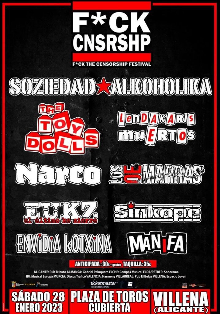 La plaza de toros cubierta de Villena acogerá el próximo sábado 28 de enero una nueva edición del festival F*ck Censorship, que ya ha dado a conocer las incógnitas que faltaban por desvelar de su cartel.