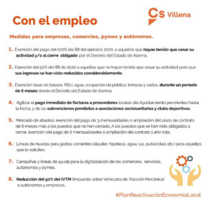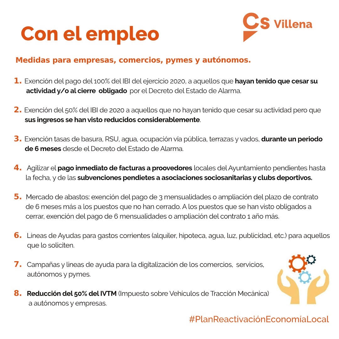 Desde “Ciudadanos”, pensamos que el Ayuntamiento tiene que estar más que nunca al servicio de toda la población y de todo el tejido económico de Villena, para ayudar a todos nuestros vecinos, y paliar en la medida que sea posible esta situación.
