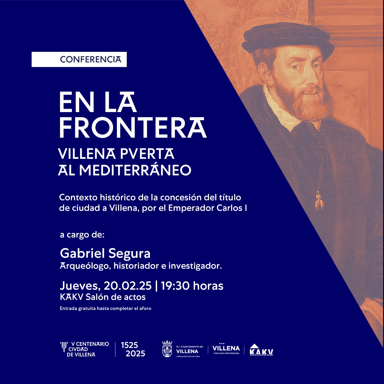 La conferencia tiene como título ‘En la Frontera. Villena puerta del Mediterráneo’ en el que presente dar un repaso al contexto histórico de la concesión del título de Ciudad que concedió el rey Carlos I el 25 de febrero de 1525.