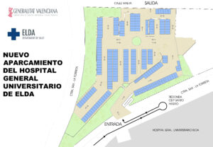 Dada la inminente apertura del nuevo aparcamiento de uso público del Hospital General Universitario de Elda, ubicado frente al centro hospitalario en la Ctra. Sax-La Torreta, s/n, se informa a la población en general de los accesos de entrada y salida al mismo indicados en el plano adjunto, a fin de que las personas usuarias puedan conocer el sentido de circulación para su mejor funcionamiento.