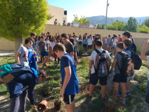 En la imagen, plantación de flores en el instituto el pasado 27 de septiembre con motivo de la movilización contra el cambio climático.