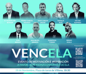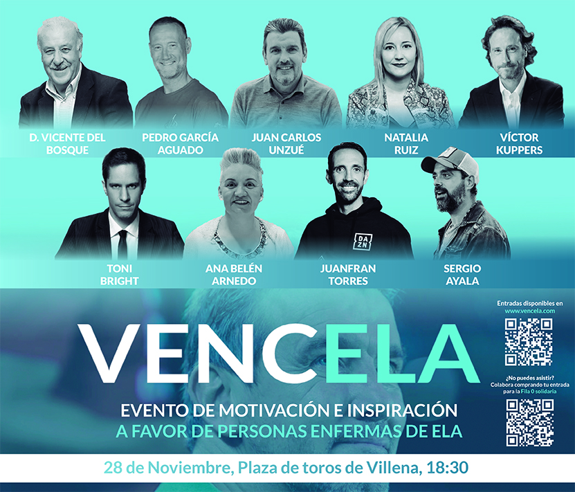 Juan Carlos Unzué, Víctor Küppers (que colaborará de modo online), Vicente del Bosque, Juanfran Torres, Ana Belén Arnedo, Sergio Ayala, Toni Bright y Natalia Ruiz serán ponentes de ‘Vencela’, esta gran jornada de motivación e inspiración que aumentará la motivación, resiliencia y entusiasmo del público asistente, consiguiendo un objetivo benéfico y solidario.