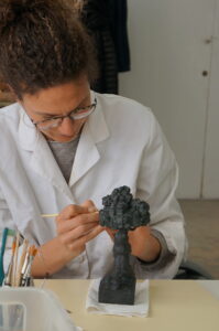 En el caso de la obra de barro denominada ‘Toro con Sombrero’, la operación de restauración ha sido más compleja, por la fragilidad del material utilizado por el artista. Esta pieza, de barro sin cocer, ya presentaba fracturas en diferentes puntos lo que ha requerido una actuación integral. De una parte, la limpieza de la obra, más la operación de desmontaje y posterior montaje de las piezas con el objetivo de aplicar nuevo adhesivo que aseguren su estabilidad.