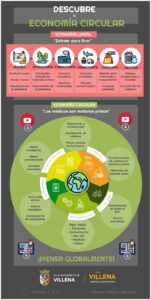 La nueva edición del programa online de educación ambiental ciudadana, ‘Villena Viva’, ofrece en esta ocasión pautas básicas en materia de Economía Circular en la gestión de residuos y el aprovechamiento de los recursos naturales con el menor impacto ambiental posible. Este episodio explica de manera didáctica la diferencia del modelo del ‘desarrollismo’, de gran impacto medioambiental y social denominado Economía Lineal, frente al modelo de Economía Circular que las sociedades van exigiendo, según explicó el edil de Medio Ambiente, Francisco Iniesta.