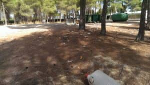 Como se puede ver en las imágenes la zona está en un lamentable estado de suciedad, tanto al rededor de los contenedores como en la pinada que hay justo al lado de los mismos que se encuentra llena de residuos, residuos que todo apunta que provienen de la zona de los contenedores por la acción del viento y de animales.