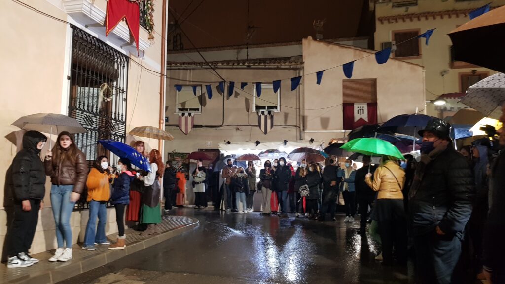 La lluvia seguía cayendo lo que no impidió a los vecinos permanecer atentos a las palabras de Giner quien alabó el trabajo y el carácter de los vecinos de El Rabal por su “carácter de convertir vecindad en parentesco”. Recordó que hace más de 25 años vino a vivir aquí con su familia y no podría vivir en ningún otro lugar, por sus sonidos, olores y por el cariño de los vecinos.
