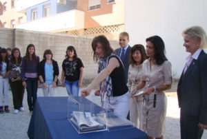 La Consellera de Bienestar Social, Angélica Such y la alcaldesa de Villena, Celia Lledó, acompañadas por el director de la Juventud, Adrián Ballester y la diputada autonómica, Mª José García Herrero, ha sido los encargados de colocar la primera piedra de este nuevo edificio. También, al acto han acudido concejales socialistas y no adscritos, así como un grupo de chicas , que según ha manifestado la alcaldesa, le manifestaron en la alcaldía la necesidad de la juventud de disponer un espacio para el ocio.