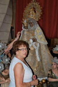 Participando activamente en los concursos del ajo del Ecuador Festero y sintiendo desde el corazón a la Sagrada Imagen. Cuántas veces, en tu misión de vestir a la Virgen has sentido sus manos llenas de cariño y amor, has apreciado su calida mirada teniendo presente esa cercanía al colocar con sumo cuidado esas blancas agujas en el manto que visten al Niñico y a la Virgen, viviendo entre esos sentimientos de dulzura y protección junto a Nuestra Madre.
