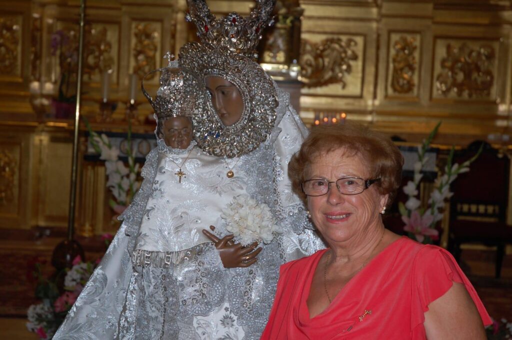 Participando activamente en los concursos del ajo del Ecuador Festero y sintiendo desde el corazón a la Sagrada Imagen. Cuántas veces, en tu misión de vestir a la Virgen has sentido sus manos llenas de cariño y amor, has apreciado su calida mirada teniendo presente esa cercanía al colocar con sumo cuidado esas blancas agujas en el manto que visten al Niñico y a la Virgen, viviendo entre esos sentimientos de dulzura y protección junto a Nuestra Madre.