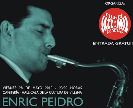 Este viernes, 28 de mayo a partir de las 23 horas en la cafetería de la Casa de Cultura y de lamano del Club de Jazz de las mil pesetas actuará Enric Peidro.