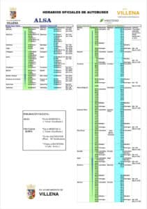 Los horarios colocados ahora en Villena son los horarios de invierno ya que en verano se incrementan y se irán actualizando cuando sufran modificaciones.