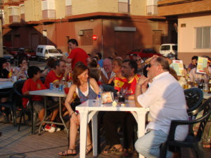 La fiesta se dejaba sentir en la población desde primeras horas de la tarde. Sobre las cinco, coches, y villenenses portando la bandera de España paseaban por las calles más céntricas de la población. Los rostros iban pintados para la batalla, con los colores de la bandera, rojo y amarillo, bufandas, vuvuzelas, abanicos, y sobre todo muchas camisetas de color rojo, el color de la selección española, el ambiente se iba calentando.