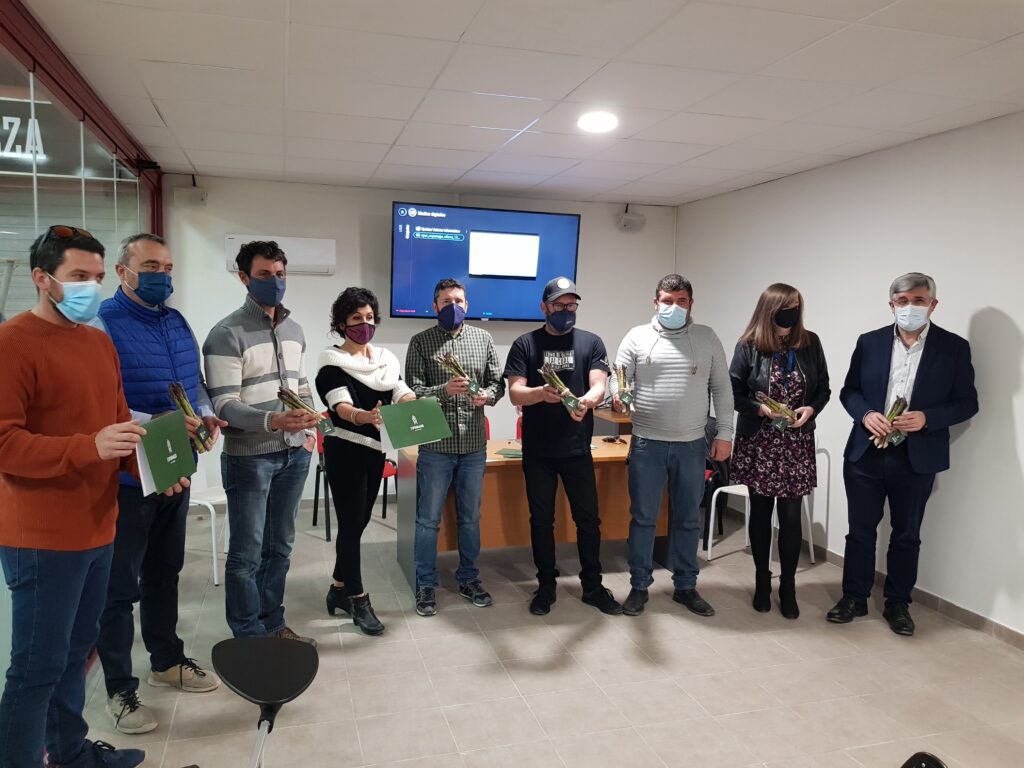 Al finalizar la presentación de la marca Espárrago de Villena y del spot publicitario para su promoción, la concejala de Desarrollo Económico le ha entregado el primer haz de espárragos etiquetados al Teniente de Alcalde, Francisco Iniesta.