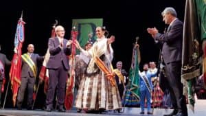 La Regidora Mayor, María Navarro, fue recibida en el escenario del Teatro Chapí por las 14 Madrinas y los Alféreces Mayores de las distintas comparsas de Moros y Cristianos, el alcalde en funciones, Javier Esquembre y el presidente de la Junta Central Fiestas, Luis Sirera al son del pasodoble La Entrada de Quintín Esquembre.