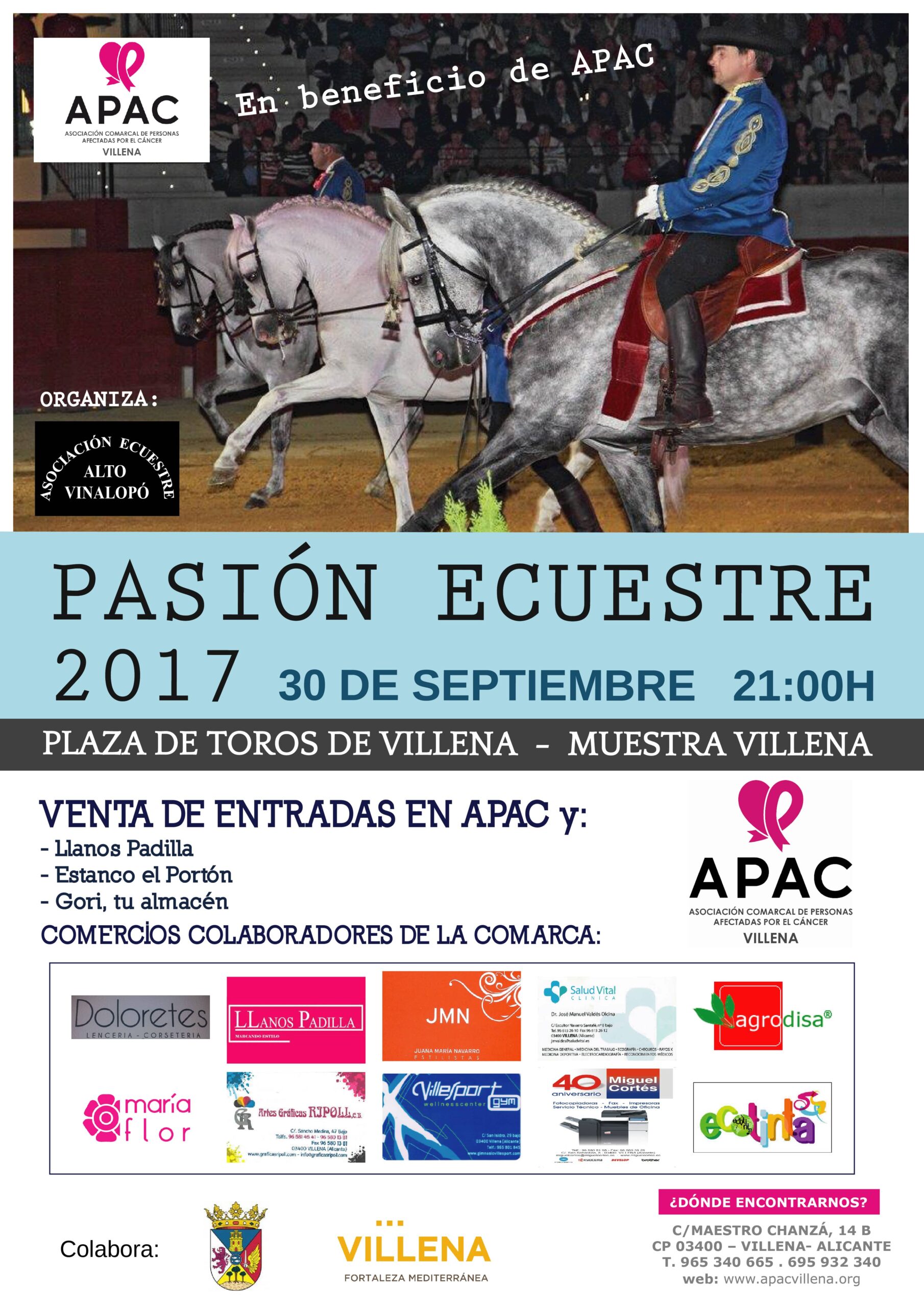 El espectáculo Pasión Ecuestre que anualmente organiza Asociación Ecuestre Alto Vinalopó será a beneficio de APAC (Asociación Comarcal de Personas Afectadas por el Cáncer).