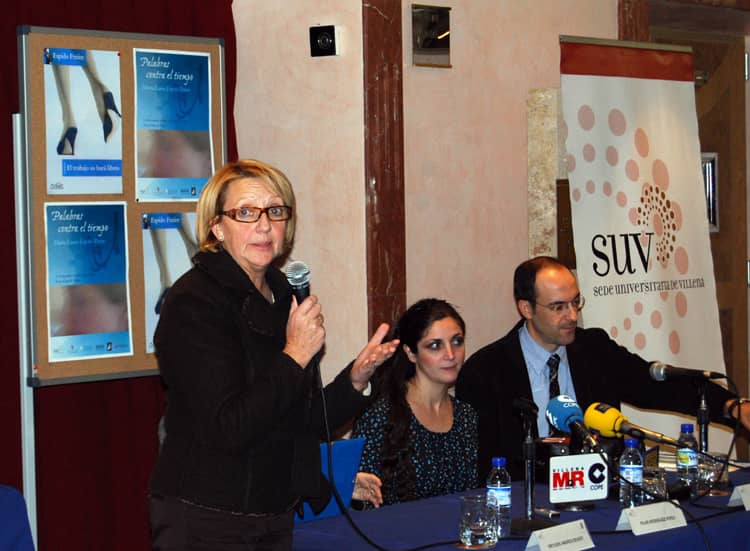 La escritora, que se mostró encantada por encontrarse en Villena, tras la rueda de prensa impartió una conferencia titulada “Palabras contra el Tiempo”, donde según la autora refleja la realidad social bajo su punto de vista. A la misma acudió un gran número de público.