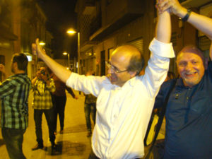 Vitoreado por los suyos, Javier Esquembre, candidato a la alcaldía por Los Verdes de Europa, conocía el resultado para su formación, que ha alcanzado los 5 concejales, superando incluso al PSOE.