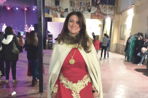 R. Antes incluso de estar en la Sede me vestía en el medievo, de esto lo culpa la tiene Paco “el ruso” que es una entusiasta de todas las actividades que se hacen desde la asociación de vecinos del Rabal. Lo conocí en mi época de directiva de la comparsa de Estudiantes, él también lo es y también se implica en las actividades de la Comparsa, enseguida se dio cuenta que tanto Mila Murillo como yo teníamos la fiesta en las venas y nos inoculó el gusto por las fiestas del Medievo, recuerdo que un año nos fuimos al concierto del Ecuador, siendo directivas de la Comparsa, vestidas de medievales y cuando nos vio entrar Jorge Hernández, que era el presidente de la Comparsa, movió la cabeza y aceptó, así son ellas. Las fiestas del Medievo nos llevaron a seguir disfrutando del resto de las actividades que se organizan desde las diferentes asociaciones del Rabal, el Rabalfest, la cena en el castillo, los monólogos, San José…y lo que tenga que venir.