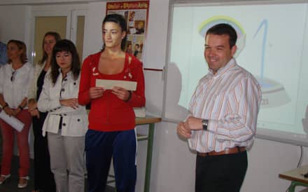 La alcaldesa, Celia Lledó, ha sido la encargada de entregar los premios a la ganadora del concurso del logotipo de la Agenda 21, Esther Pérez y al colegio La Encarnación..