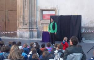Antes de subir al autobús para efectuar el regreso, en la plaza del Cardenal Belluga, frente a la Catedral el cuentacuentos “Juanolo” describió a nuestros más pequeños el cuento de los tres “chivones”. Un cuento entretenido para chiquillos y mayores, que puso el punto y final a esta excursión.