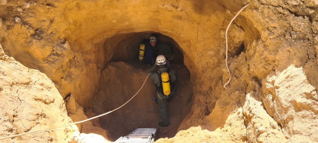 Un equipo de expertos de la empresa villenense especialista en trabajos confinados, Rodes Espacios Confinados, ha realizado la inspección del corredor subterráneo descubierto de manera fortuita en la calle Menéndez Pelayo de Villena como consecuencia de las obras de reasfaltado. El alcalde de Villena, Fulgencio Cerdán, ha acelerado las tareas de inspección y revisión de la estructura artificial, de cuyo origen todavía no hay certezas concretas de su función y datación de su construcción.