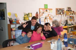 Fede Aguado, el actor que dio vida al detective Inocencio Bonilla de la serie “Amor en tiempos revueltos” y actualmente se encuentra siendo protagonista de la exitosa producción “Mar de Plástico”, donde se mete en el papel de Sergio Rueda, un joven discapacitado con una importante peso en la trama de la serie, visitó ayer las instalaciones de nuestro Colegio de Educación Especial y de nuestro Centro Ocupacional.