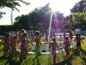 Todo empezó a primera hora de la tarde con unas actividades de agua en donde nuestros niños se lo pasaron en grande: se deslizaron por una lona llena de jabón, nadaron haciendo carreras en la piscina, pasaron globos de agua con toallas, entonaron canciones con la boca llena de galletas y jugaron al ya tradicional juego de las sillas musicales. Mientras tanto los más mayores del Club preparaban una rica merienda que disfrutarían al final de la tarde.