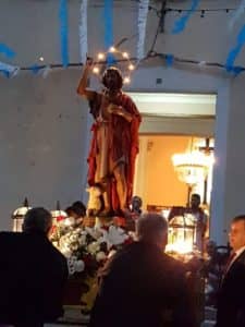 El domingo 1 de julio tras la Despertá y la degustación de gachamigas tuvo lugar la misa en honor a San Juan Bautista. Durante se desarrolló la Ofrenda de Flores a San Juan a partir de las 19:00 horas y la Procesión a partir de las 20:30 horas, con la participación de autoridades locales y las Regidoras Mayor e Infantil de Villena.