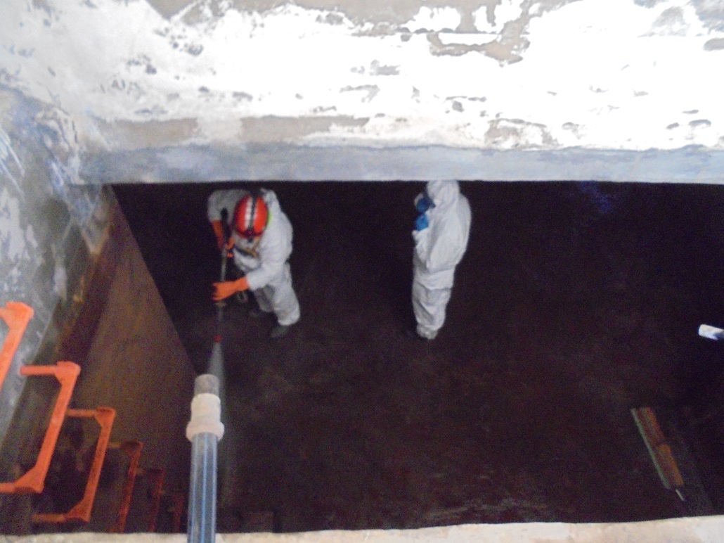 - En una segunda fase, se realiza la limpieza hidromecánica para extraer las incrustaciones de paredes y suelos. Después se revisan y reparan, si es necesario, las válvulas, arquetas, tuberías y otros elementos del depósito, aprovechando que éste se encuentra vacío.
