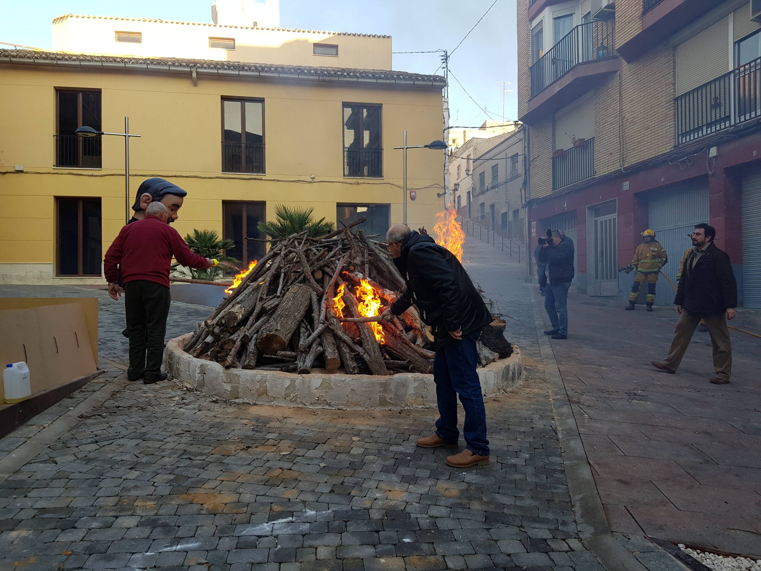 El encendido de la hoguera, en la plaza Pascual Domenech, ha dado inicio a los actos organizados con motivo de la festividad de San Antón. Como hace dos años, el personaje Toquis Nonis, junto al alcalde, Javier Esquembre y el presidente de la asociación de San Antón, José Antonio Esquembre, ha procedido a encender la hoguera que permanecerá en la plaza hasta  mañana por la noche.