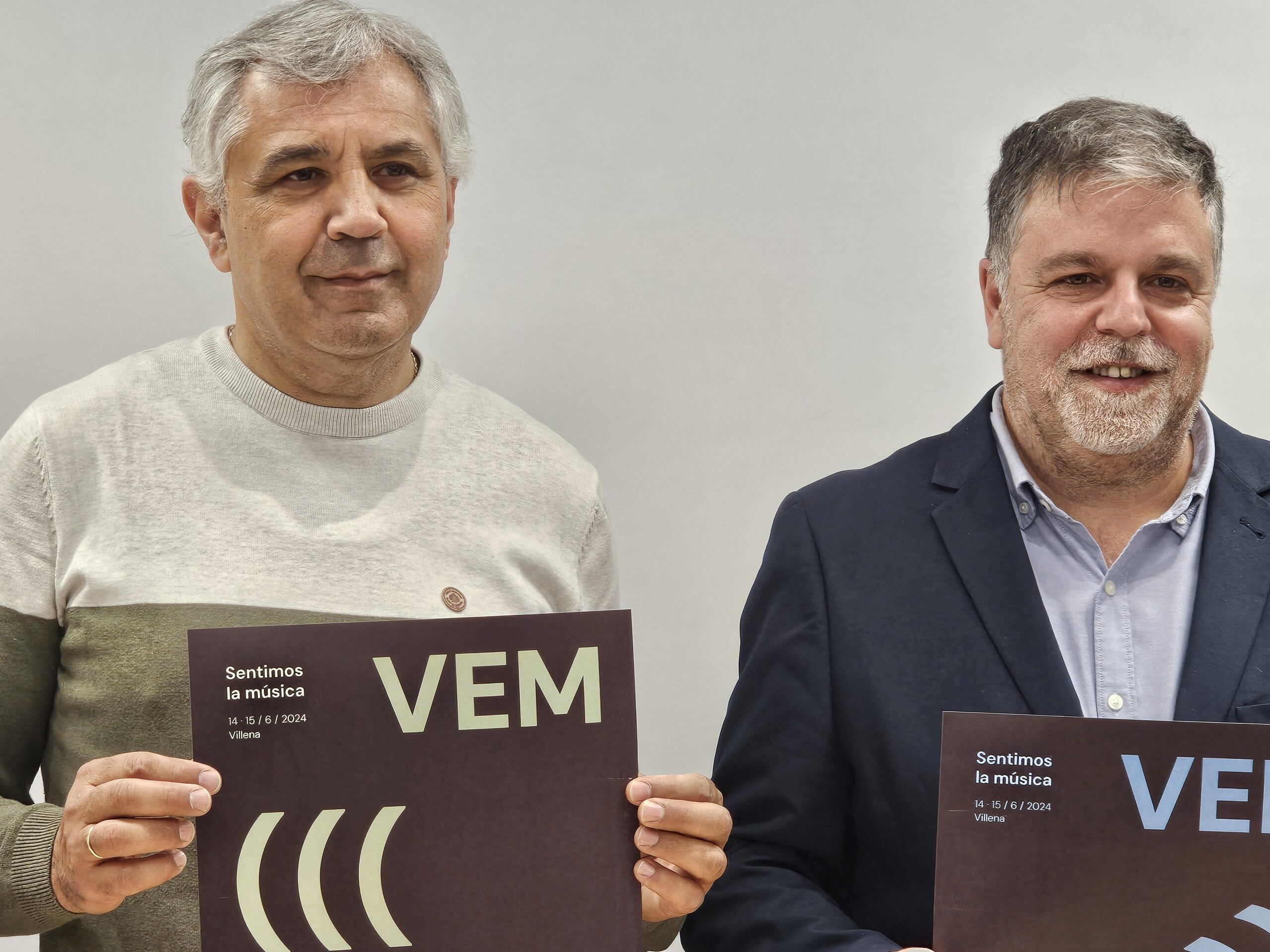 El alcalde de Villena, Fulgencio Cerdán, la edil de Cultura, María Server y el director de la Casa de la Cultura, Pepe Ayelo han presentado la novena edición del VEM que este año se celebrará del 14 de junio a partir de las 19 horas hasta el 15 de junio a las 23.59 horas bajo el lema “Sentir la música”.