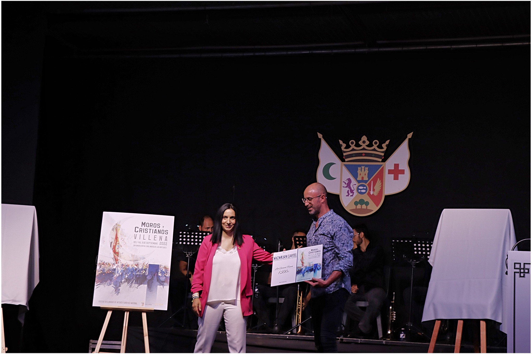 A un mes para el deseado 5 de septiembre, el Patio del Festero se abrió para dar a conocer los elementos gráficos y la publicación más emblemáticos de los Moros y Cristianos de Villena. Así, la gala de presentación de la revista especial Dia 4 que Fuera comenzó con el descubrimiento del cartel del Fiestas. En el centenario de la Banda Municipal de Música de Villena (BBMV) , el motivo central de la ilustración es la banda y su abanderado desfilando por las calles de Villena. El ganador del concurso de 2022, Luis Gomáriz, recogió su precio de manos de la concejala de Fiestas, Maite Gandía.