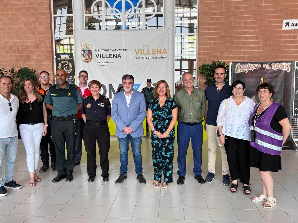 Esta mañana se ha constituido el puesto de mando avanzado de los festivales musicales de Villena Leyendas del Rock y Rabolagartija en el polideportivo municipal. Un acto que ha contado con el alcalde de la localidad, Fulgencio Cerdán, la delegada del Gobierno en la Comunitat Valenciana, Pilar Bernabé; miembros de la Corporación Municipal, responsables de la Guardia Civil de Villena, Policía Local, Protección Civil, Cruz Roja; la técnica de Igualdad del Ayuntamiento y la promotora de ambos eventos.