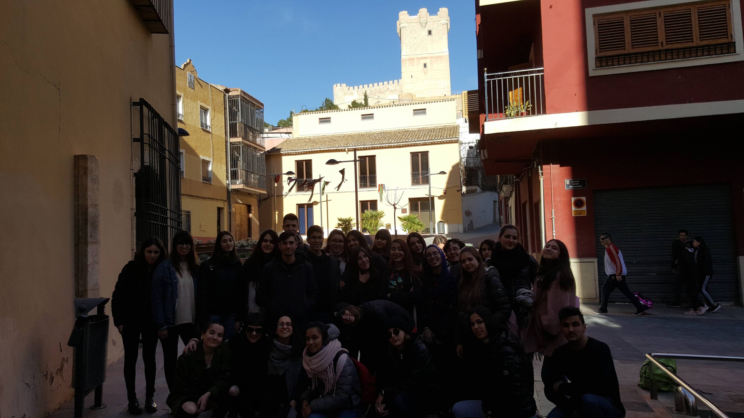 Ayer jueves, día 22 iniciaron su visita a nuestra ciudad y al IES Las Fuentes un grupo de 18 alumnas y dos profesoras provenientes del Liceo Manfredo Fanti de Carpi-Módena (Italia). Por la mañana, acudieron al centro para conocer sus instalaciones y asistir a algunas clases. Por la tarde, entraron al Castillo de la Atalaya, al Museo Arqueológico y al Salón de Plenos del Ayuntamiento, donde fueron recibidos por el Excmo. Sr. Alcalde D. Francisco Javier Esquembre. Este viernes se acercarán a Biar; mañana sábado, disfrutarán de una jornada de convivencia en el instituto con su alumnado de bachillerato y familiares, que incluirá una visita al Cabezo Redondo; el domingo viajarán a Alicante; y el lunes volverán a entrar en las clases y a disfrutar de una fiesta de despedida, por la tarde, en el Espacio Joven.