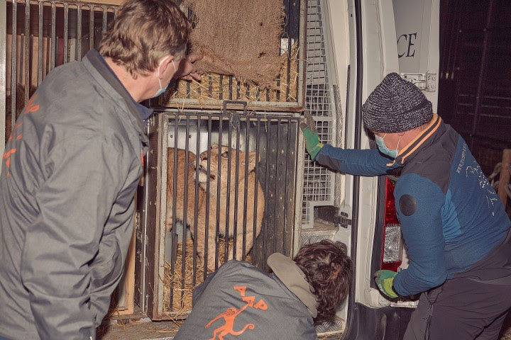 Finalmente ayer, los cuatro leones y el licaón llegaron a AAP Primadomus, el centro de rescate en España de la ONG internacional AAP – Animal Advocacy and Protection.