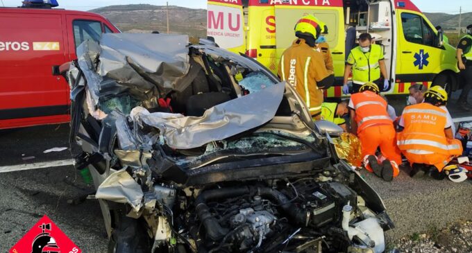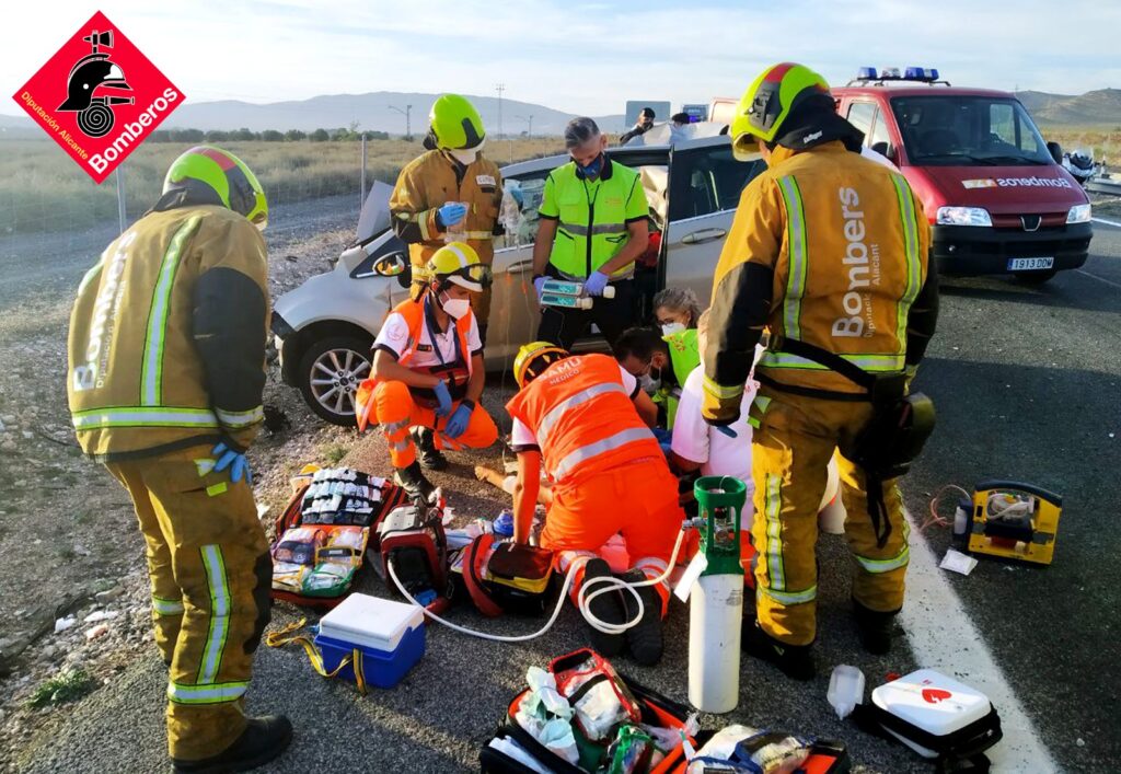 El accidente se debió a un frenazo en cadena de varios vehículos quedando en unos de ellos un conductor atrapado y herido grave, que ha necesitado la intervención de los bomberos del parque de Villena para liberarlo del vehículo.