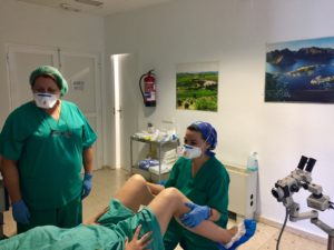 La técnica se realiza en una visita habitual de la paciente, empleando anestesia local y con un tiempo medio del procedimiento inferior a una hora, tras lo cual la paciente puede irse por su propio pie.