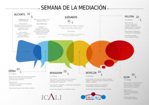 La jornada tendrá lugar de 17 a 19 horas e intervendrán el delegado del ICALI en Villena, José Lobregad Espuch, el diputado 6º de la Junta de Gobierno del ICALI, Miguel Ángel Martínez Martínez y las mediadores y miembros de la Sección de Mediación del ICALI Encarnación Leal Pérez y María Dolores Hernández Gutiérrez.