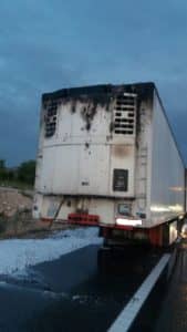 En la tarde del martes 25 de abril, el 112 alertaba a los bomberos del Consorcio Provincial de Alicante,  de un incendio que se había declarado en un remolque de un tráiler  que circulaba en sentido Madrid, a la altura del restaurante Los Balcones. De inmediato se movilizaron hacia el lugar del siniestro los bomberos del área operativa del Vinalopó, a bordo de 2 vehículos autobomba y uno de jefatura, de los parques de Villena y Elda. La rápida intervención de estos efectivos y el desenganche de la tractora fueron decisivos para evitar que el incendio fuera a mayores. Quedando eso sí, bastante afectado el eje de ruedas traseras y parte del frigo. En el siniestro no resulto nadie herido, durante las labores de extinción el tráfico se vio alterado en la zona, dotaciones de la DGT. También colaboraban en la señalización y en asegurar la zona.