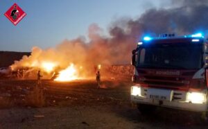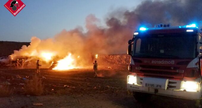 Sobre las 9 de la noche el 112 recibía una alerta del inicio de un incendio en el paraje de los Cabezos, en un vertedero de basura de Villena. Una gran cortina de humo negro se podía divisar desde las viviendas del casco urbano.