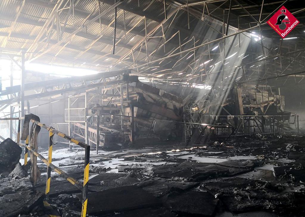 Incendio en una nave de residuos en Villena, en el paraje de los cabecicos S/N. El fuego comenzaba a las 12.39 horas. Se ha desalojado a los trabajadores, se ha visto afectado en el interior de la nave tanto la maquinaria como el material de reciclado.