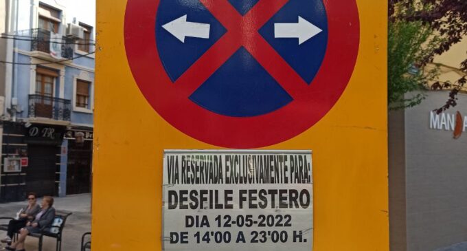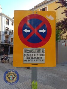 Prohibición de estacionamiento y retirada de vehículos en los tramos de calle afectados por señal a partir de las 14’00 horas del jueves 12 de mayo de 2022.