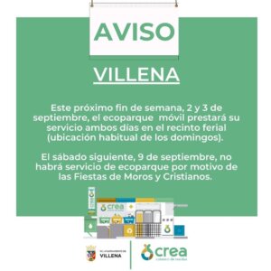 La Concejalía de Limpieza y RSU informa de los cambios en ubicaciones y horarios en los próximos días para el servicio de ecoparque móvil de Villena.
