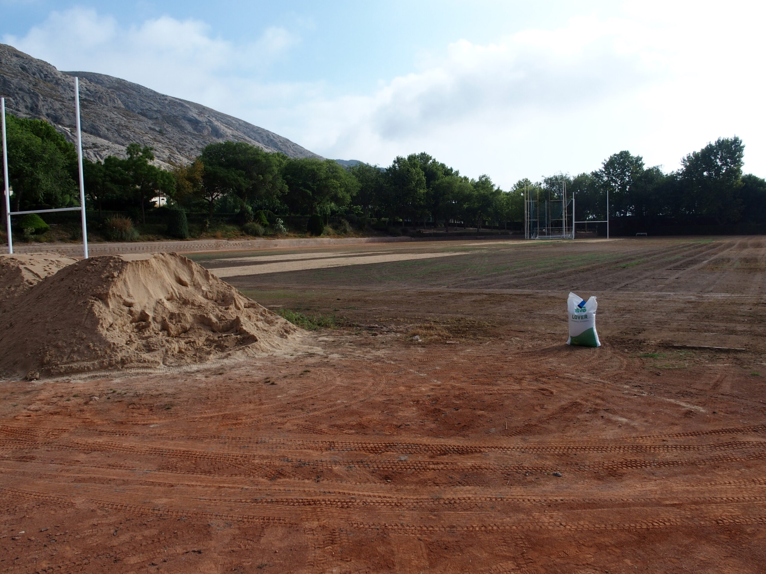 Se informa a la ciudadanía que ya se han iniciado los trabajos de resiembra en el campo de césped del Polideportivo Municipal, una vez finalizados los festivales de música celebrados en agosto.