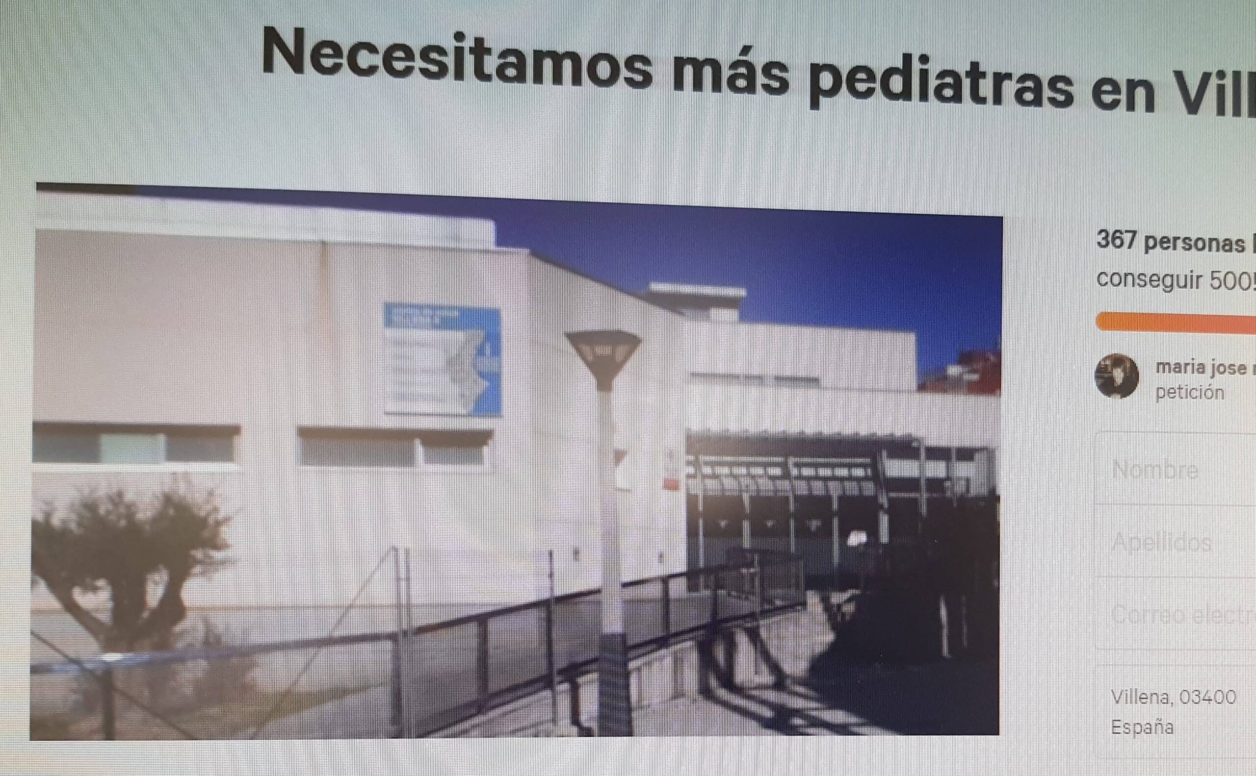 A través de la plataforma Change.org se ha iniciado una campaña de recogida de firmas para solicitar más pediatras en Villena. En menos de 24 horas lleva más de350 firmas recogdias.