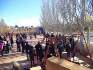 El viernes 11 de Marzo fue un día festivo. Por la tarde desde hace varios años la Sociedad participa en un acto emotivo con los niños y niñas del colegio. La Sociedad entró al CEE Apadis interpretando La Entrada acompañando a los niños y niñas, a la Regidora Infantil, a los diversos cargos y al frente de cabo Cristina de la Comparsa de Maseros. Una vez en el patio fue el tiempo para desfilar al son de varias marchas moras y cristianas y pasodobles, al final se realizó el concurso de ruedo de banderas.