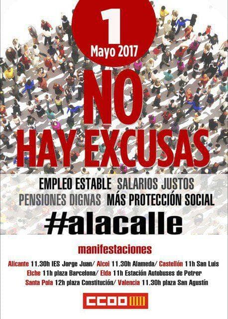 Este 1 de mayo estamos llenos de razones para salir a las calles: por las reformas laborales, por los salarios de miseria, por las amenazas de despido, por la represión a las huelgas y al sindicalismo. Desde Izquierda Unida hacemos un llamamiento para que el lunes sea una jornada combativa en toda España.
