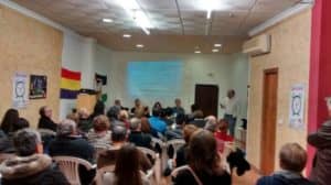 El acto comenzó con una breve exposición de Pedro Menacho, de IU-Villena, que presentó a las ponentes y recordó el dolor al conocer la aprobación de la “ley mordaza”. El primer ponente fue Paco Martínez, miembro del Frente Cívico, que mencionó que con el TTIP pasaríamos a ser gobernadas por “tecnócratas” entre otras cosas.