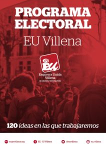 Atípico, complejo, denso, pero a la vez ordenado y coherente. 120 ideas en las que trabajaremos junto a toda la ciudadanía, especialmente, junto a las asociaciones y movimientos sociales. EU Villena solo se ha encargado de darles forma, pero este programa lo habéis hecho posible vecinas y vecinos con cada papel en la urna, con cada reunión, con cada demanda pública en entrevistas.